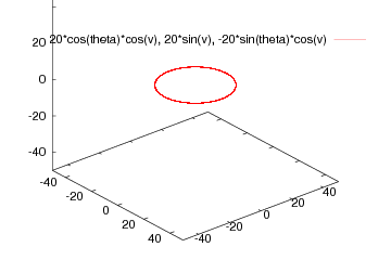 gnuplotで媒介変数を使った3次元での立体の表示をしてみた。x-y平面の円をy軸の周りに回転する行列をかけて、10枚のファイルを作る。これをImageMagickを使って、アニメのファイルに変換する。