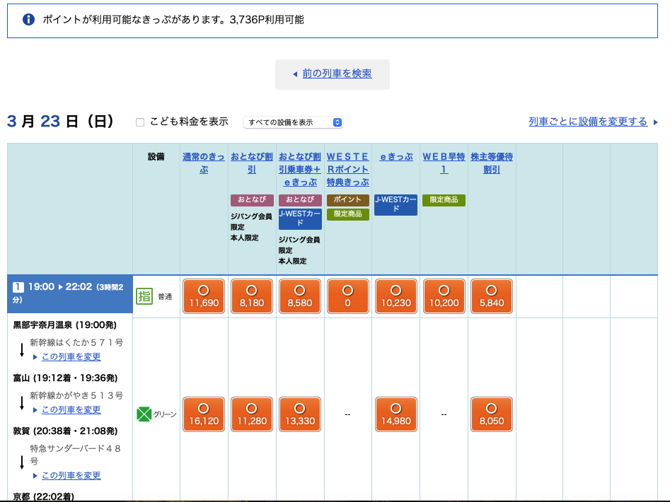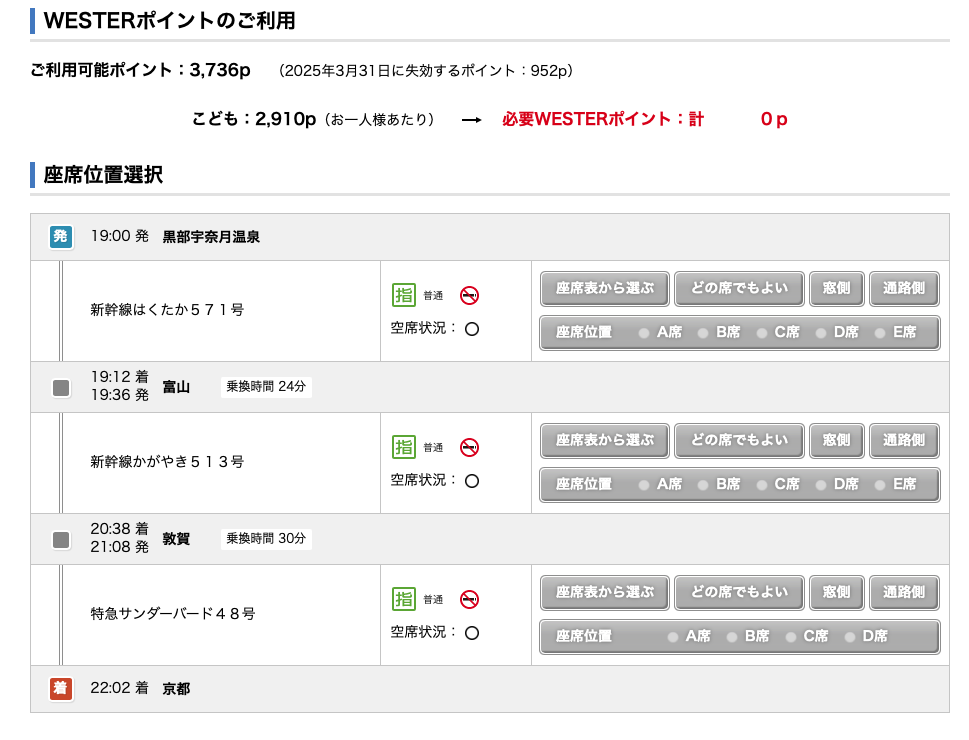 エザライで富山に帰ることになり、ポイントを使うことを考えた。多分5000ポイントぐらいかかるのではと思う。足りないかもしれないが一応クリックしてみたら以下の画面となり意味がよくわからない。