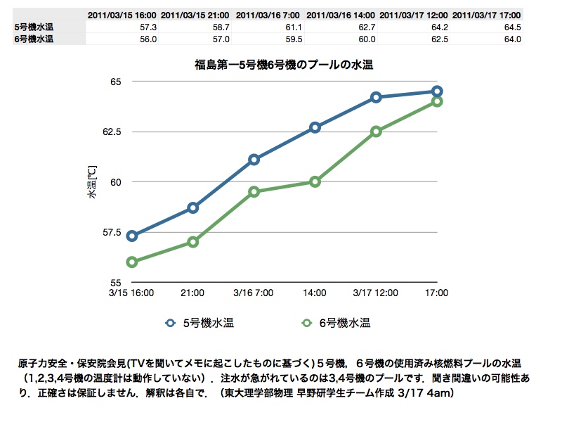 17日10時:これを見ると最悪の危機は脱したように見える。冷温停止の宣言を早く聴きたい。